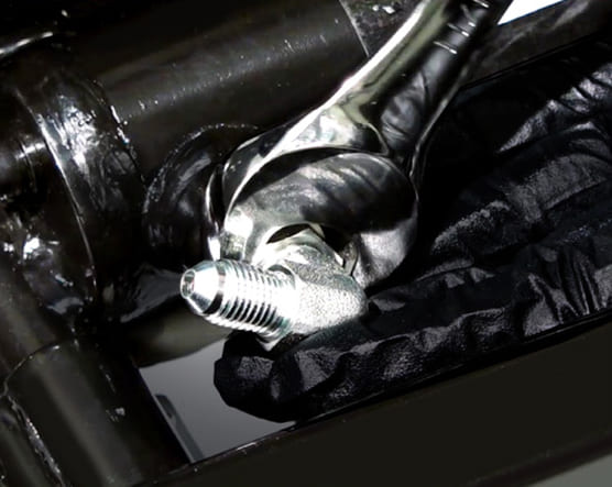 ※油圧液漏れに備え、布などを敷いて作業してください。