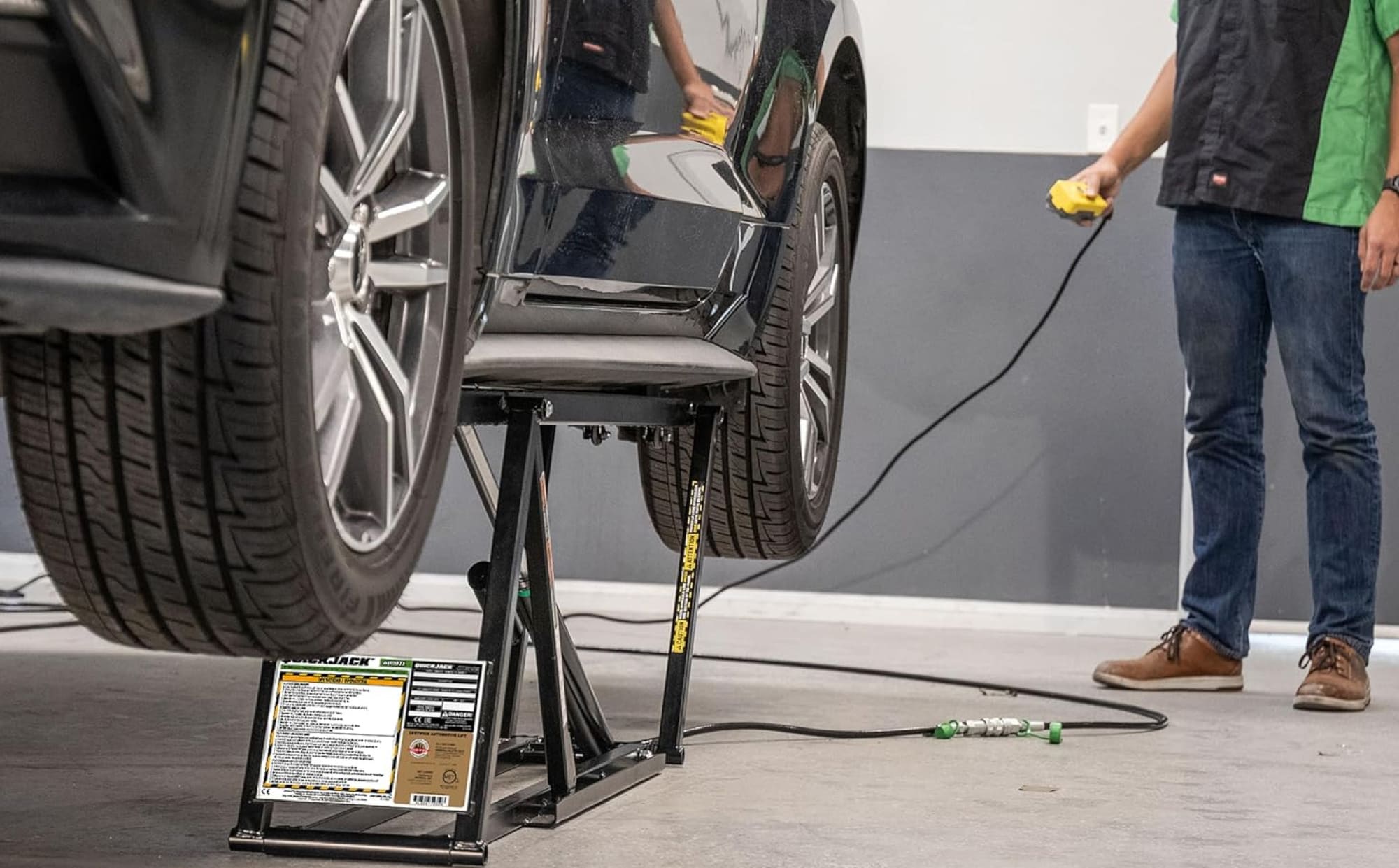 リジットラック作業の手間を省く。QuickJackは、ボタン操作だけで車体を安全にリフトアップ。 家庭用110V電源で稼働し、限られたガレージスペースでもプロ同等の効率を実現します。